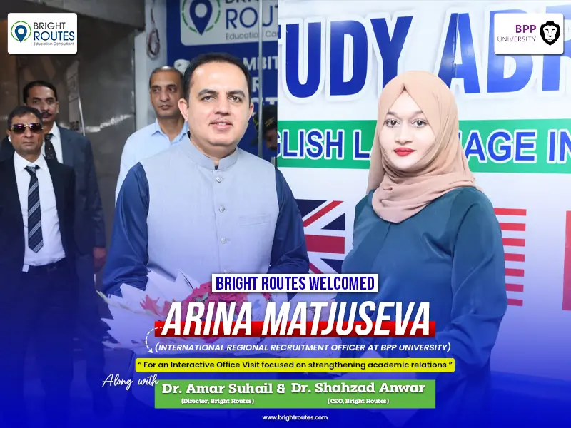 Visit Bright Routes Education Consultants Dr. Shahzad Anwar (CEO, Students Club), Dr. Amar Suhail (Director, Students Club) & Arina Matjuseva (UK Representative, BPP University)